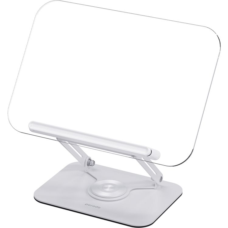 Porodo Transparent Tablet Stand with 360° Rotatable Arm and Adjustable Angle - White