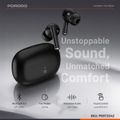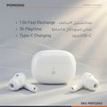 Porodo True Flex Earbuds Pro with Music & Gaming Mode, 5 Hours Play Time, 230mAh Case & 25mAh Earbuds Battery, Ultra Low Latency, USB-C Charging Port, Voice Assistant - White