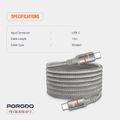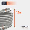 Porodo Type-C to Type-C Magnetic Braided Cable with 60W Power Delivery, 1.2m Cable Length, More than 15,000 Bends Lifespan, Tangle-Free Design - Gray