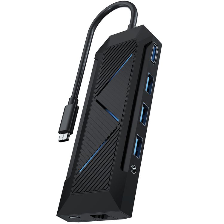 Porodo Gaming 9-in-1 Hub Gamers Edition with High Speed 5Gbps Data Transfer, 3.5mm Audio Jack, 100W PD Fast Charging, 1000Mbps Ethernet Port, Micro SD & TF Card Support, Plug & Play - Black