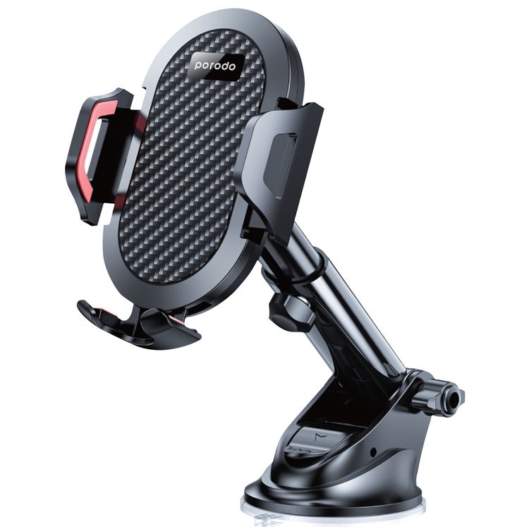Porodo Universal Dual Car Mount with Suction & Air Vent, One-Hand Operation, 55-59mm Wide Compatibility, Silicone Pad, 360° Rotation - Black