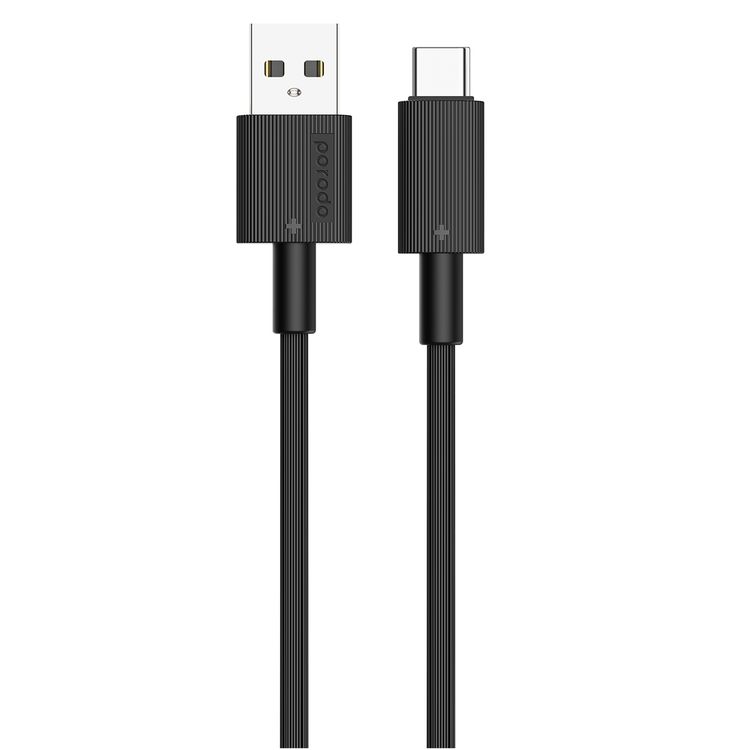 Porodo USB-A to USB-C PVC Cable, 480Mbps Transfer Speed, more than 15000 Bends Life Span, 1.2m Cable length, Tangle Free - Black