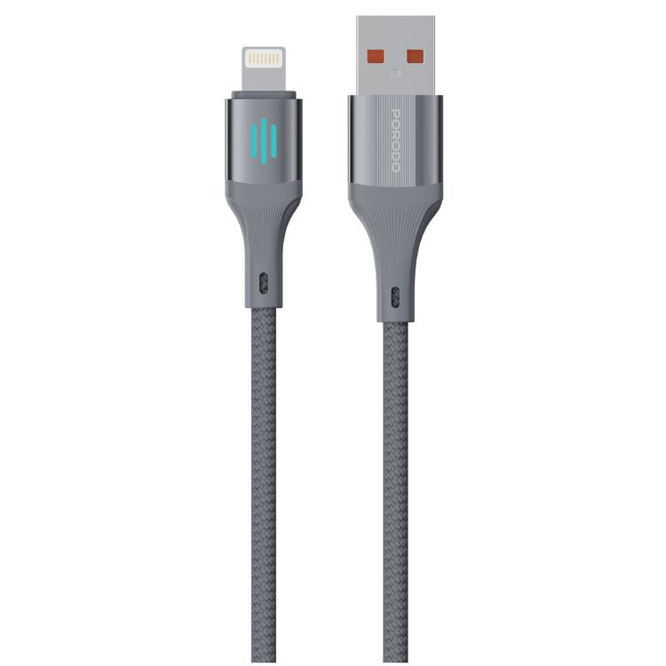 Porodo USB-A to Lightning Charging & Data Cable with 3A Rated Current, 480Mbps Data Transfer Rate, 1m Cable Length, Durable Braided Material, Tangle-Free, Optimal Charging, Enhanced Durability - Gray