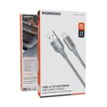 Porodo USB-A to Lightning LED Light Cable with 2.4A Current, 480Mbps Transfer Speed, 1.2m Cable Length, Fast Charging & Data Transfer, Braided Wire - Gray