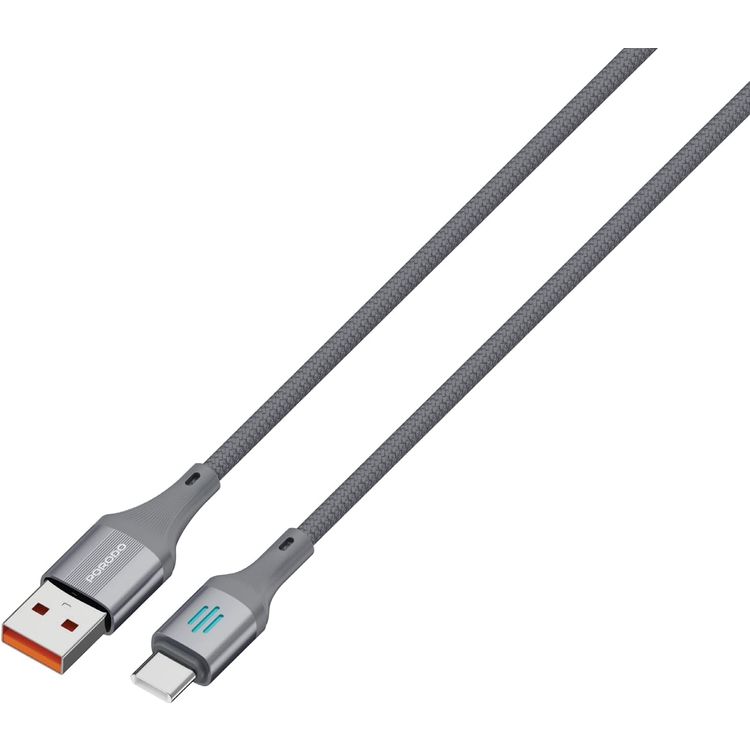 Porodo USB-A to USB-C Charging & Data Cable with 27W PD Output, 480Mbps Data Transfer Rate, 1m Cable Length, Durable Braided Material, Tangle-Free, Optimal Charging, Enhanced Durability - Gray