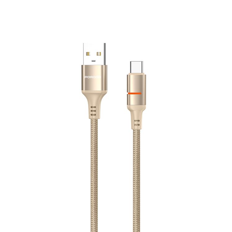 Porodo USB-A to USB-C LED Light Cable with 2.4A Current, 480Mbps Transfer Speed, 1.2m Cable Length, Fast Charging & Data Transfer, Braided Wire - Gold