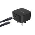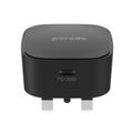 Porodo Super-Compact Fast Charger with Type-C to Lightning Cable, 20W USB-C Power Delivery, Overcurrent Protection, UK 3-Pin Plug, Fire Retardant Material, 0%-60% Charge in 30 Minutes - Black