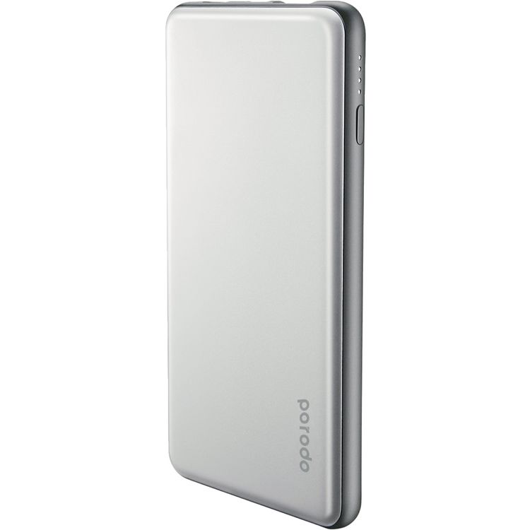 Porodo 10000mAh Super Slim Power Bank with Built-in Lightning Cable, LED Indicators, Li-Polymer Battery, Overcharge & Overheat Protection, 15W Type-C Output, LED Power Indicators - Silver
