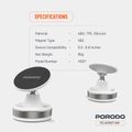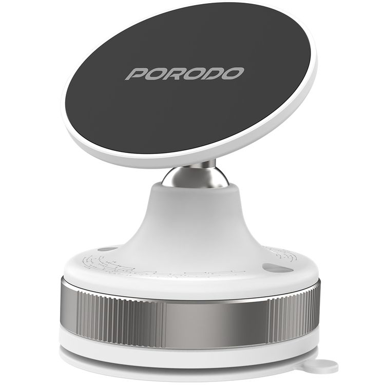 Porodo Vacuseal Smart Suction Magnetic Phone Mount with Adjustable Viewing Angle, N52 Magnets, 5.5" to 6.9" Device Compatibility, Strong Suction - White