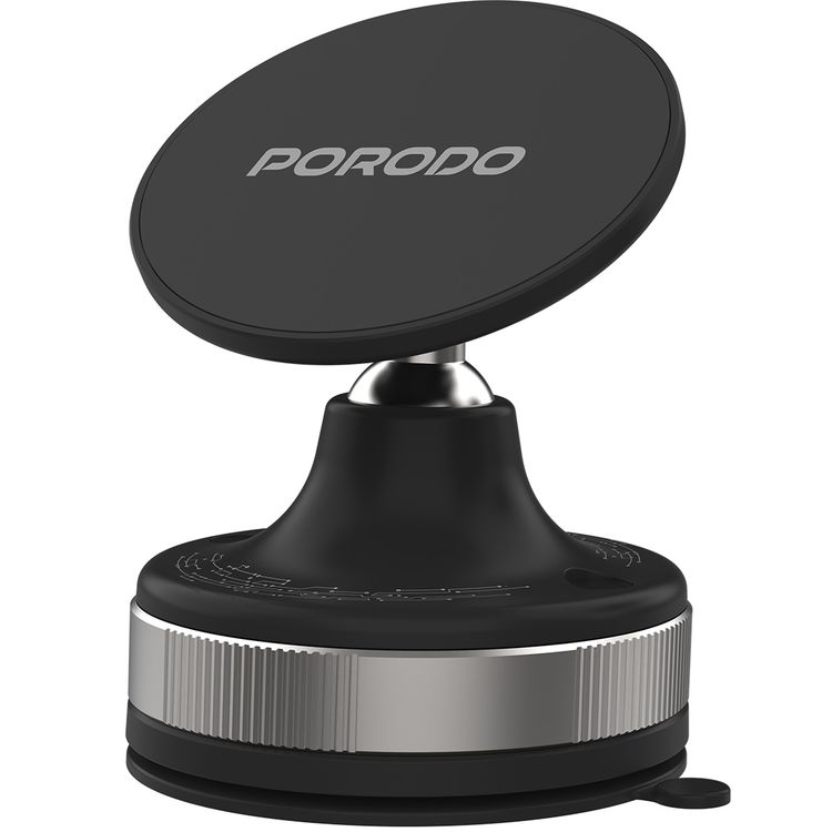 Porodo Vacuseal Smart Suction Magnetic Phone Mount with Adjustable Viewing Angle, N52 Magnets, 5.5" to 6.9" Device Compatibility, Strong Suction - Black