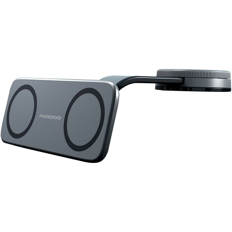 Porodo Vacuum & Adhesive Magnetic Car Mount with Dual Phone Holder, 360° Full Rotation, 350g Load Weight, N52 Magnet Type , Vacuum Suction Cup, Nano-Adhesive Stand Mount Types, Adjustable Arm, Rotatable Ball Joint - Black