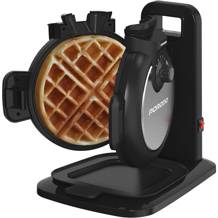 Porodo Vertical Waffle Maker with 5 Heat Levels, 210mL Capacity, 800W Power, Up to 5:30 Minutes Waffle Making Time, Non-Stick Plate, Batter Tray - Black