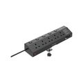 Porodo Voltguard Multiple Ports Power Socket with 80cm Retractable Type-C Cable, PD 20W, UK Plug, 5 AC Sockets, USB-A & USB-C Ports, Built-in Clamp - Black
