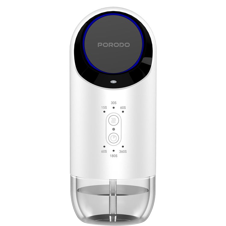 Porodo Wall Plug-in Essential Oil Diffuser with Customizable Mist Intervals, 120mL Capacity, 200-250m³ Coverage Area, 60s, 180s & 360s Timer Settings, Refill Indicator Light, Waterless Diffusion - White