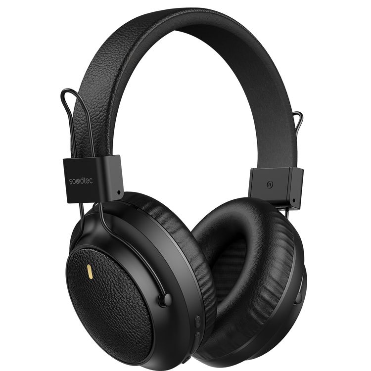 Porodo Wireless Stereo Headphones with Leather-Finish, 40mm Speaker Diameter, Up to 20 Hours Play Time, 10m Transmission Distance, 180 Hours Standby Time, TF Card Support, Stereo Sound Quality - Black