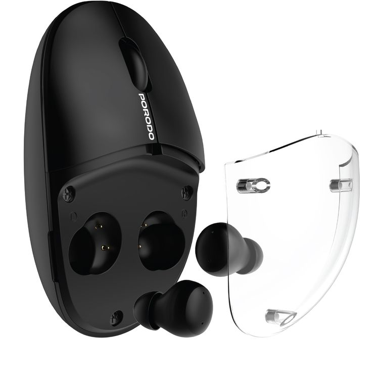 Porodo Wireless TWS Earbuds & Mouse with Transparent Magnetic Cover, Plug & Play, 3 Million Clicks Switch Lifespan, Up to 4 Hours Earbud Battery Life, Up to 30 Hours Mouse Battery Life, 10m Wireless Range - Black