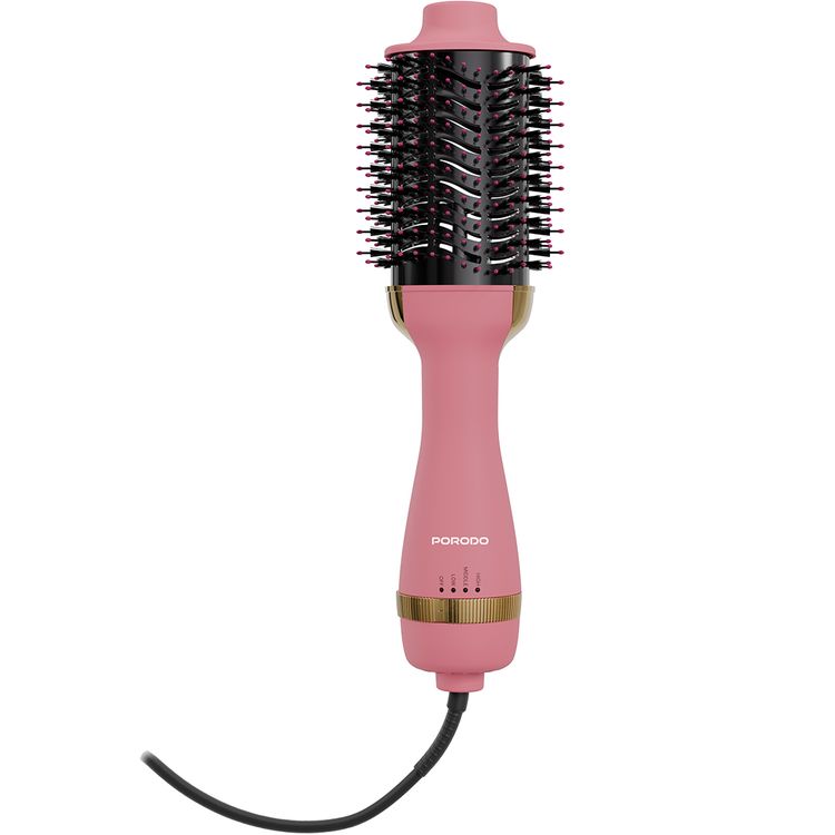Porodo Shinewhirl Electric Hair Styling Brush with Hair Straightener Brush & Dryer, 3-Pin UK Plug, 1.8m Cord Length, Adjustable Heat Levels, Scalp Massaging Ball Tips, Ergonomic Design - Pink