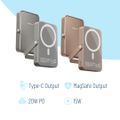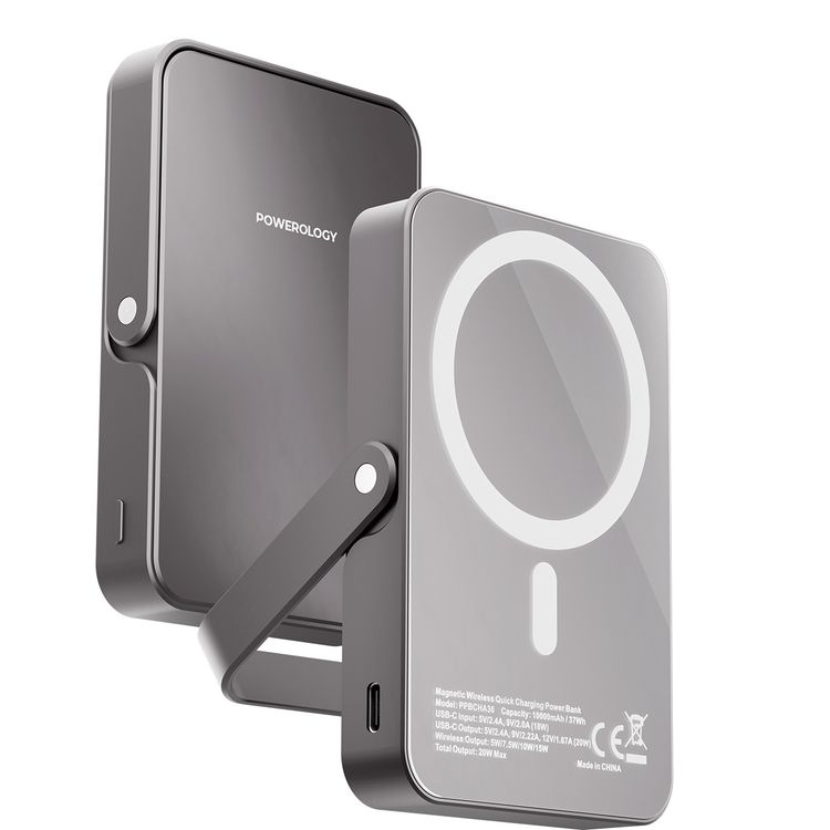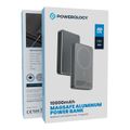 Powerology 10000mAh Magsafe Glass Surface Power Bank with Compact Design, Type-C & Wireless output, Integrated Stand, Aluminum Material, 20W Power Delivery, Cable-Free - Titanium