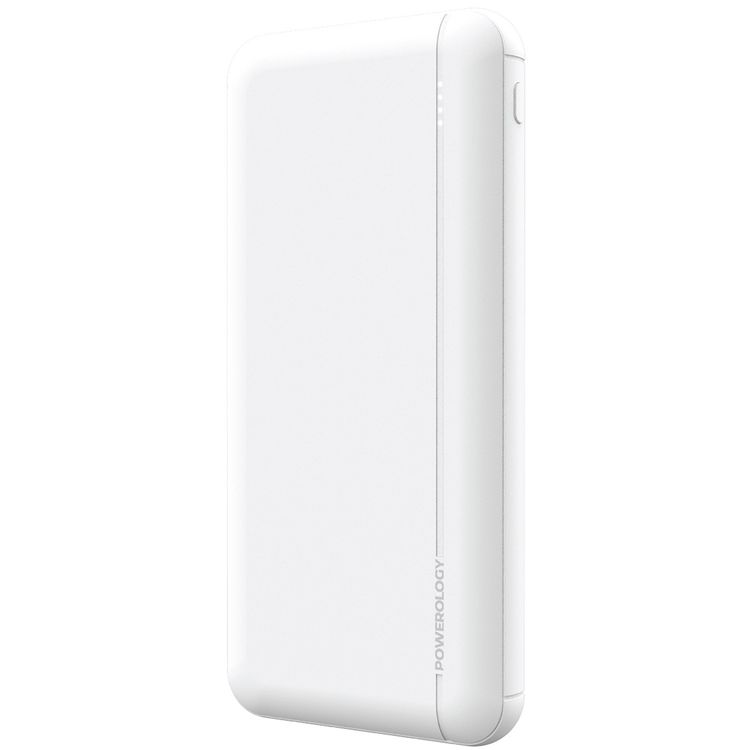 Powerology 10000mAh Quick Charging Power Bank with 20W Power Delivery, 18W USB-A 3.0 QC, 0% to 60% Charge in 35 Minutes, LED Lights, Lightweight & Compact - White