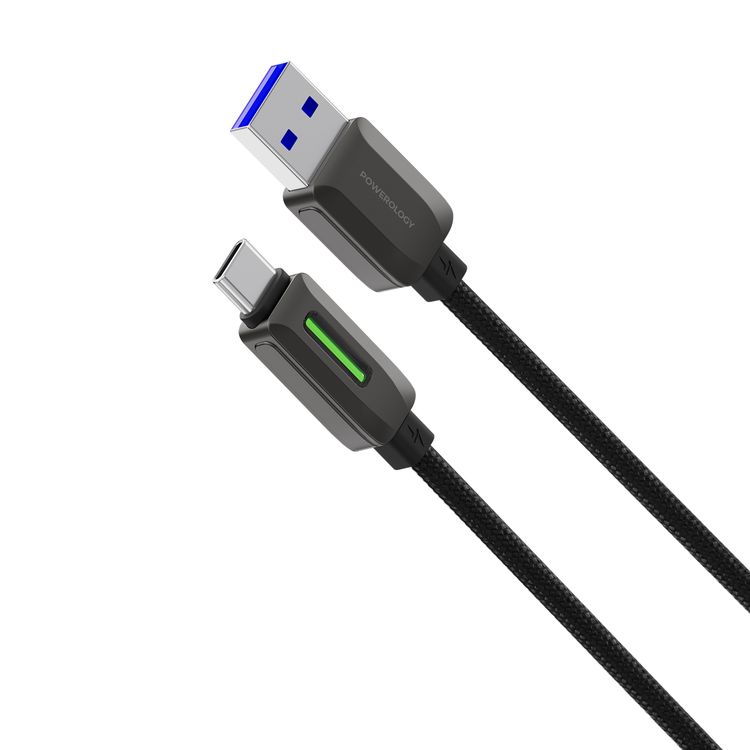 Powerology 12W Braided USB-A to USB-C Cable, 1.2m Optimal Length, Safety Protection, 480Mbps Rapid Data Transfer, Braided PVC with Zinc Alloy Connectors - Black