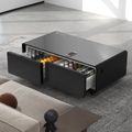 Powerology 135L Coffee Table Fridge with LED Display, 2 Drawers, Wireless Charging, Quiet Operation, Compact Design, USB and Type-C Charging Port, Glass Top - Black