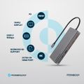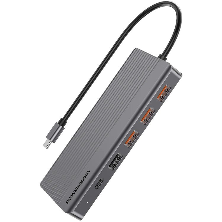 Powerology 13-in-1 USB-C Hub, 4K, HDMI, Type-C, 100W PD, Ethernet, USB SD MicroSD, 3.5 AUX - Gray