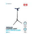 Powerology 2600mAh Camping Light with Tripod Stand, Built-in Solar Panels, 16 Hours Working Time, 5 Hours Charging Time, 180° Magnetic Head Lamp, 3 Light Modes, IPX4 - Black