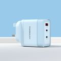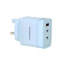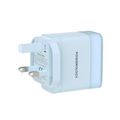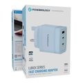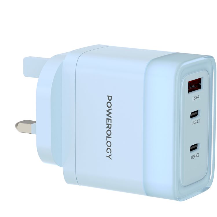 Powerology Lunex Series 3-Port Fast Charging Adapter with UK 3-Pin Power Plug, 65W PD USB-C Output, 22.5W QC USB-A Output, Multi-Device Charging, Powerful Laptop Charging, Universal Protocol Support - Blue