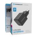 The Powerology 35W Ultra-Quick GaN Charger with EU Plug, USB-C Output Port, Fast Charge, Portable & Compact Design, Built-in Safeguards, 100-240V Input - Black