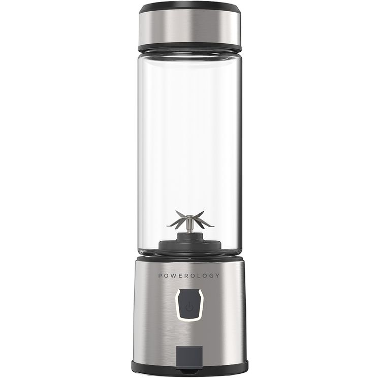 Powerology 6-Blade Portable Juicer with 450ml Capacity, Safety Switch, 126W Motor, Glass Container, USB-C Charging Port, 16500 RPM Speed, Ice Crusher, Stainless Steel Blades - Silver