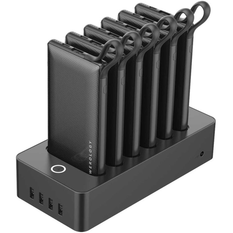 Powerology 6 in 1 Power Bank Station 10000mAh With Built-in Cable, Portable Power Bank, 1 Rapid Recharging Station, Type C Charging Ports - Black