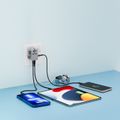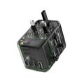 Powerology Universal Multi-Port Travel Adapter with 65W Power Delivery, Dual 10A Fuses, 12W USB-A Output, Laptop Charging Compatibility, Universal Plugs - Transparent / Gray
