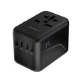 Powerology Universal Multi-Port Travel Adapter with 65W Power Delivery, Dual 10A Fuses, 12W USB-A Output, Laptop Charging Compatibility, Universal Plugs - Gray