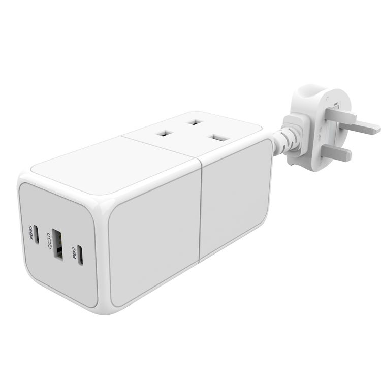 Powerology 65W Power Strip with Dual Power Sockets, PD 65W, QC 18W, 1.5m Cable, Built-In Safeguards, Laptop Charger - White