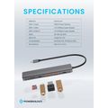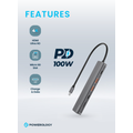 Powerology 6-in-1 Slim USB-C Hub with 4K Ultra HD HDMI, 100W PD, v3.2 10Gbps Super Speed USB-C Data, 2 x v3.2 10Gbps Super Speed USB-C Data, 4K UHD @ 60Hz HDMI, Supports v3.0 MicroSD, Fast Data & Charge - Gray