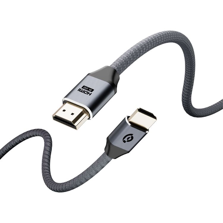 Powerology 8K HDMI to HDMI Braided Cable, 2m Cable, 10K Resolution, 24K Gold Plated Connector, Portable and Lightweight - Grey