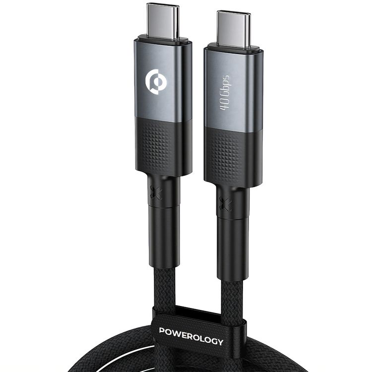Powerology Type-C Braided Cable, 8K Video 40Gbps Data USB4, 2M - Gray