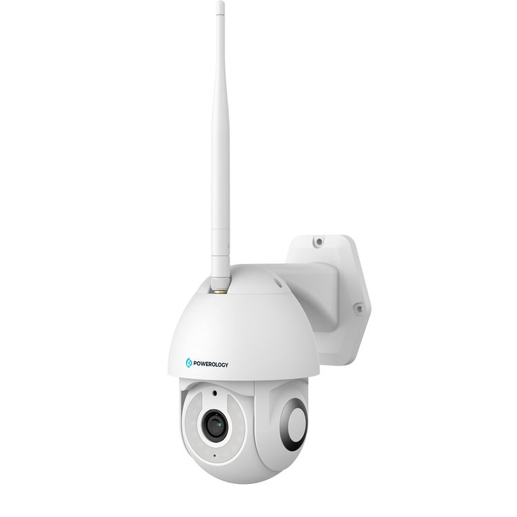 Powerology Advanced Outdoor Camera with 360-degree Viewing Angel, Full-color Night Vision, Auto-tracking, Motion Sensor, 3MP Resolution, Real Time Monitoring, 12 LED Lights, IP65 Waterproof - White