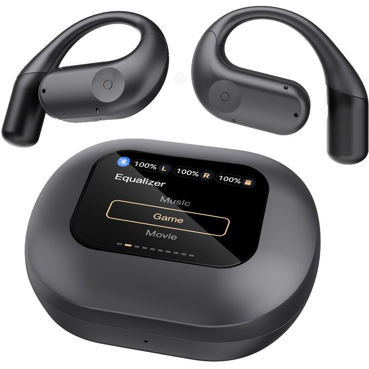 Powerology Air Conduction ENC TWS Earbuds and Charging Case with Digital Display, Bluetooth Version 5.3 - Black