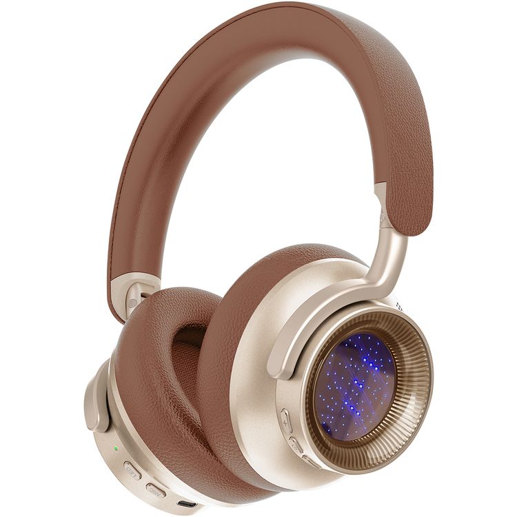 Powerology Astro ANC Wireless Headphones with Up to 40 Hours Play Time, Wireless & Wired Modes, Bluetooth Version 5.4, Customizable LED Lights, 600mAh Battery, Ergonomic Design, 95 Hours Standby Time, 40mm Driver Size - Khaki
