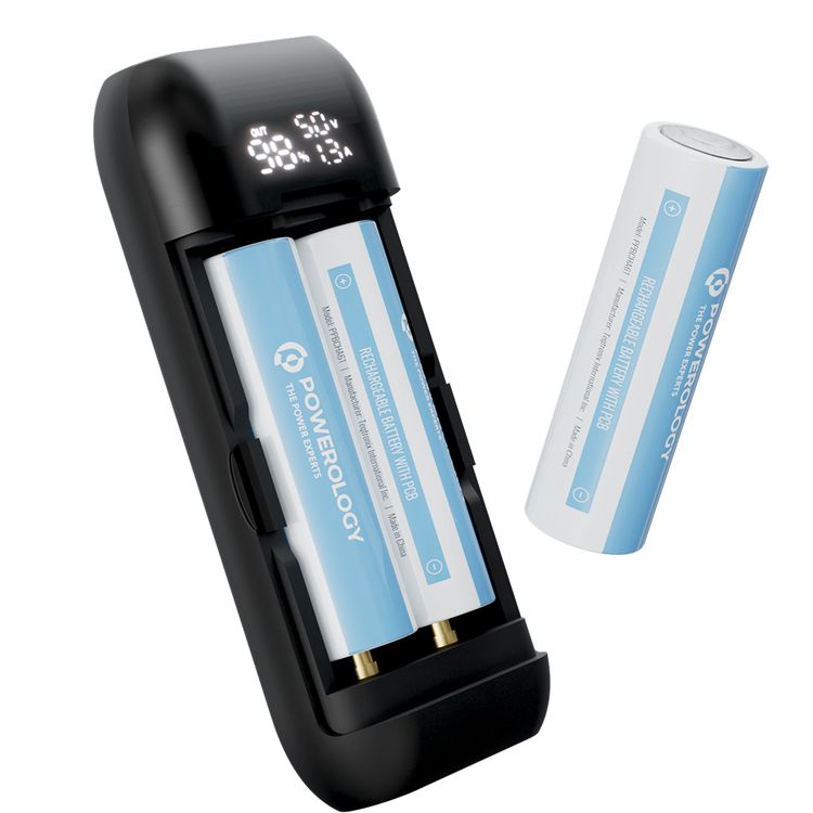 Powerology Diy Cell 10000+5000mAh Powerbank, Built-in Safety Features, Simultaneous Charging, Digital Info Panel - Gray