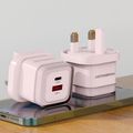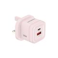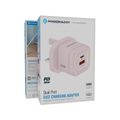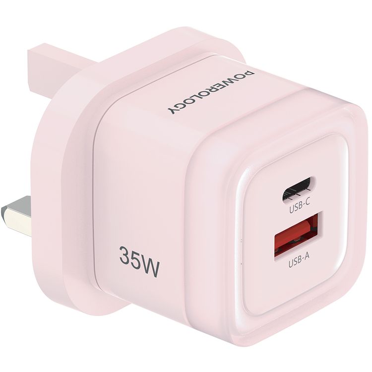 Powerology Lunex Dual-Port Fast Charging Adapter with USB-C & USB-A Ports, 35W Power Delivery, 22.5W USB-A Output, UK 3-Pin Plug, Universal Protocol Support, Multi-Device Charging - Pink