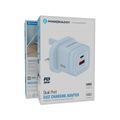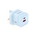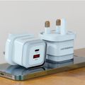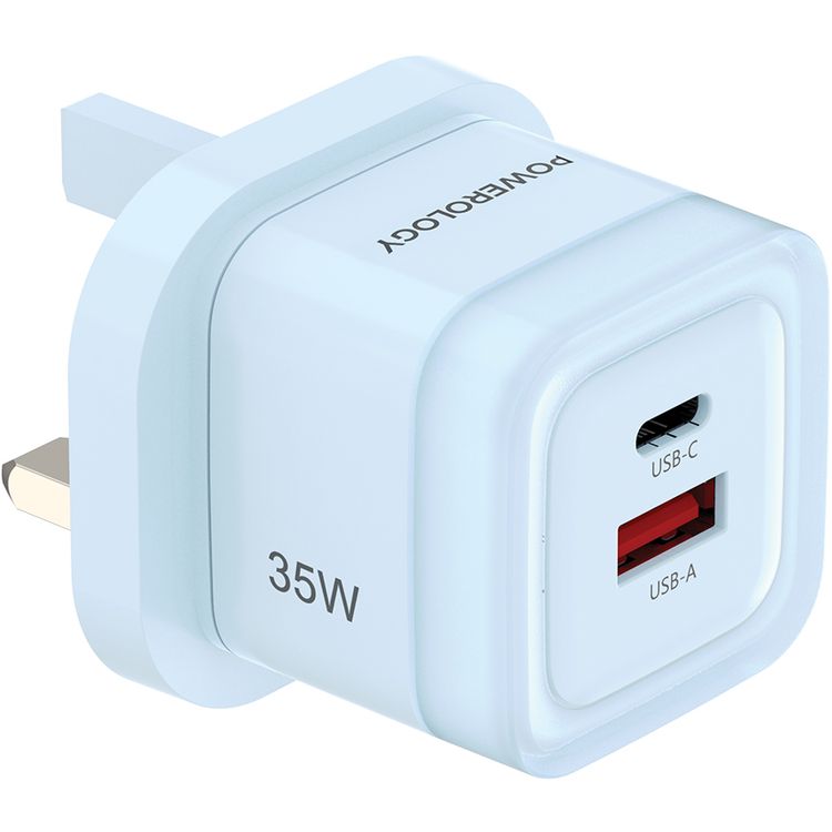 Powerology Lunex Dual-Port Fast Charging Adapter with USB-C & USB-A Ports, 35W Power Delivery, 22.5W USB-A Output, UK 3-Pin Plug, Universal Protocol Support, Multi-Device Charging - Blue