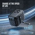Powerology GaN 20W PD Universal Adapter with Retractable Type-C Cable, Simultaneous Charging, Includes Spare Fuse, Built-In Safeguard - White