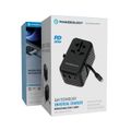 Powerology GaN 20W PD Universal Adapter with Retractable Type-C Cable, Simultaneous Charging, Includes Spare Fuse, Built-In Safeguard - Black