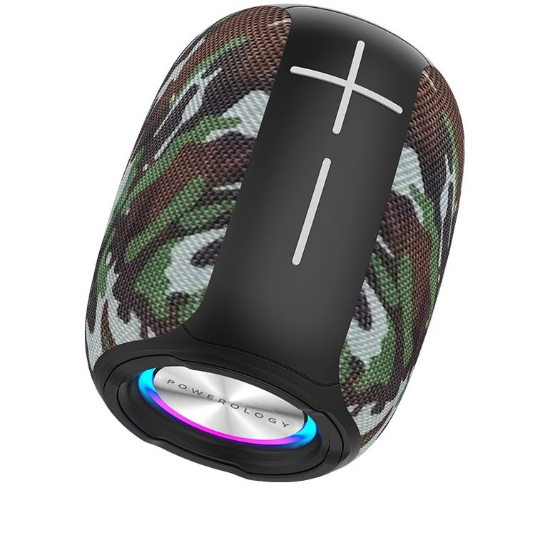 Powerology Ghost Speaker, 5h Playtime, Bluetooth 5.0, 1500mAh Battery Capacity, FM Function, IPX5 Water Resistant, Enhanced Bass - Camouflage