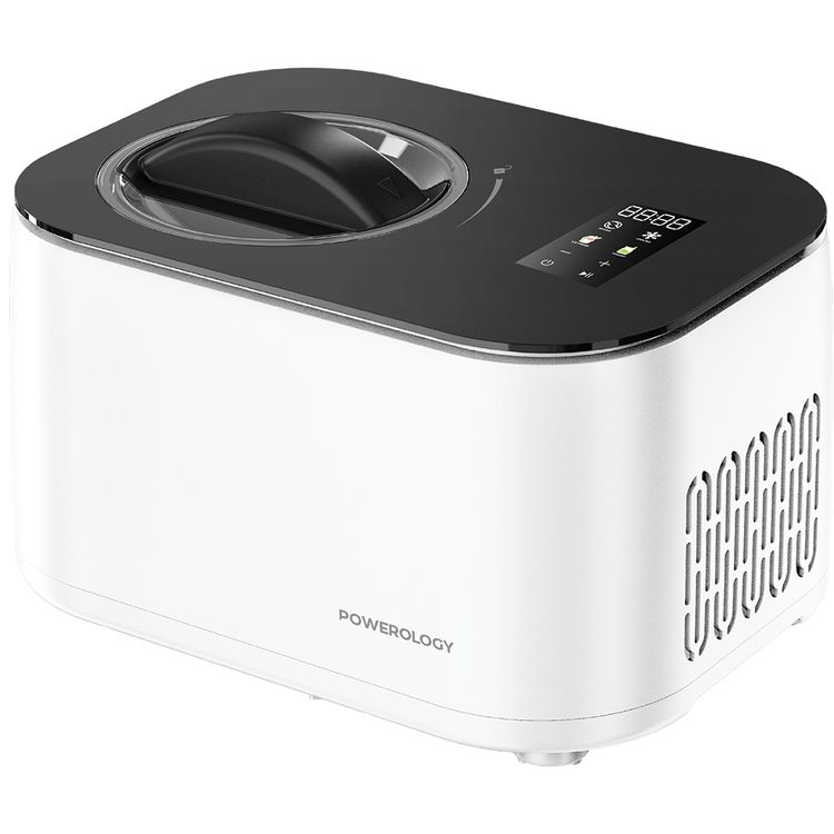 Powerology Ice Cream & Frozen Yogurt Machine with 4 Mixing Modes, 1L Capacity, 50 to 60 Minutes Preparation Time, Low-Noise Operation, 100W Cooling Power - White