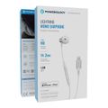 Powerology Lightning Mono Earphone with 5mW Max Power, 1.2m Cable Length, 32Ω Impedance, 14.2mm Driver Size, 110dB Sensitivity, Control Button, HD Sound Clarity - White