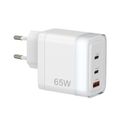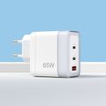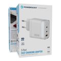 Powerology Lunex Series 3-Port Fast Charging Adapter with EU 2-Pin Power Plug, 65W PD USB-C Output, 22.5W QC USB-A Output, Multi-Device Charging, Powerful Laptop Charging, Universal Protocol Support - White