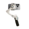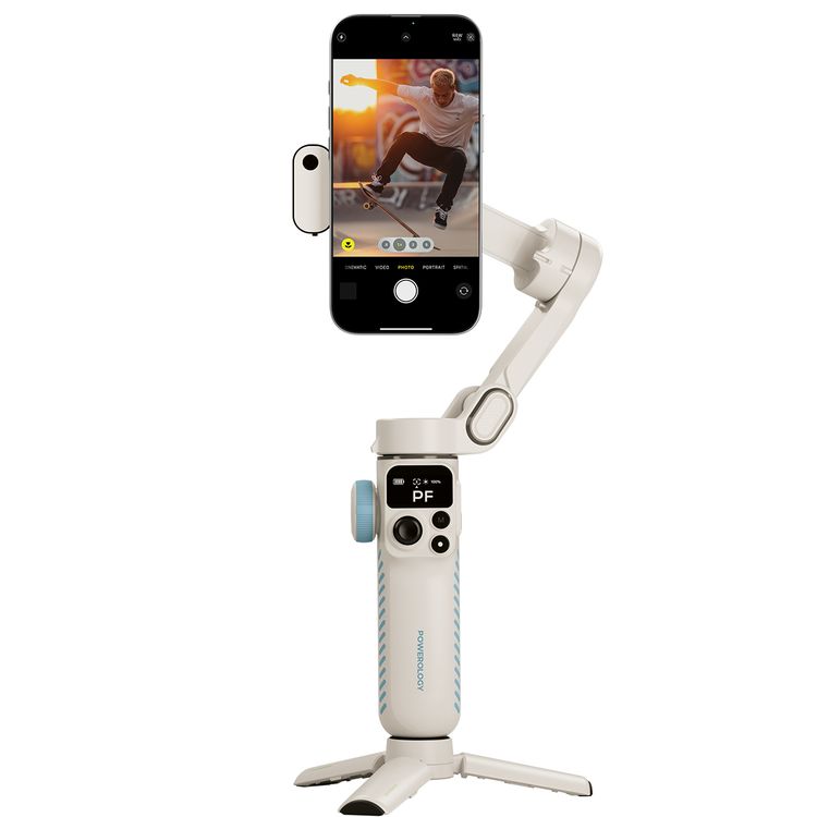 Powerology Magwave 3-Axis Magnetic SmartPhone Gimbal with Smart Gesture Control, MagSafe Snap-On or Adjustable Clamp, Built-in Extension Rod, Foldable & Ultra-Light Design, OLED Display, 5 Intuitive Hands-Free Commands, 6 Shooting Modes - White